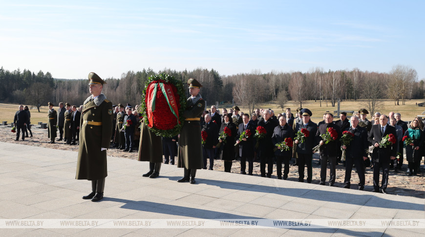 Первым к Вечному огню лег венок от Президента Республики Беларусь как символ того, что вся страна сегодня скорбит, вспоминая жителей Хатыни, а также жителей белорусских деревень, разделивших ее судьбу. Таких населенных пунктов 288, частично или полностью уничтоженных — более 12 тыс.