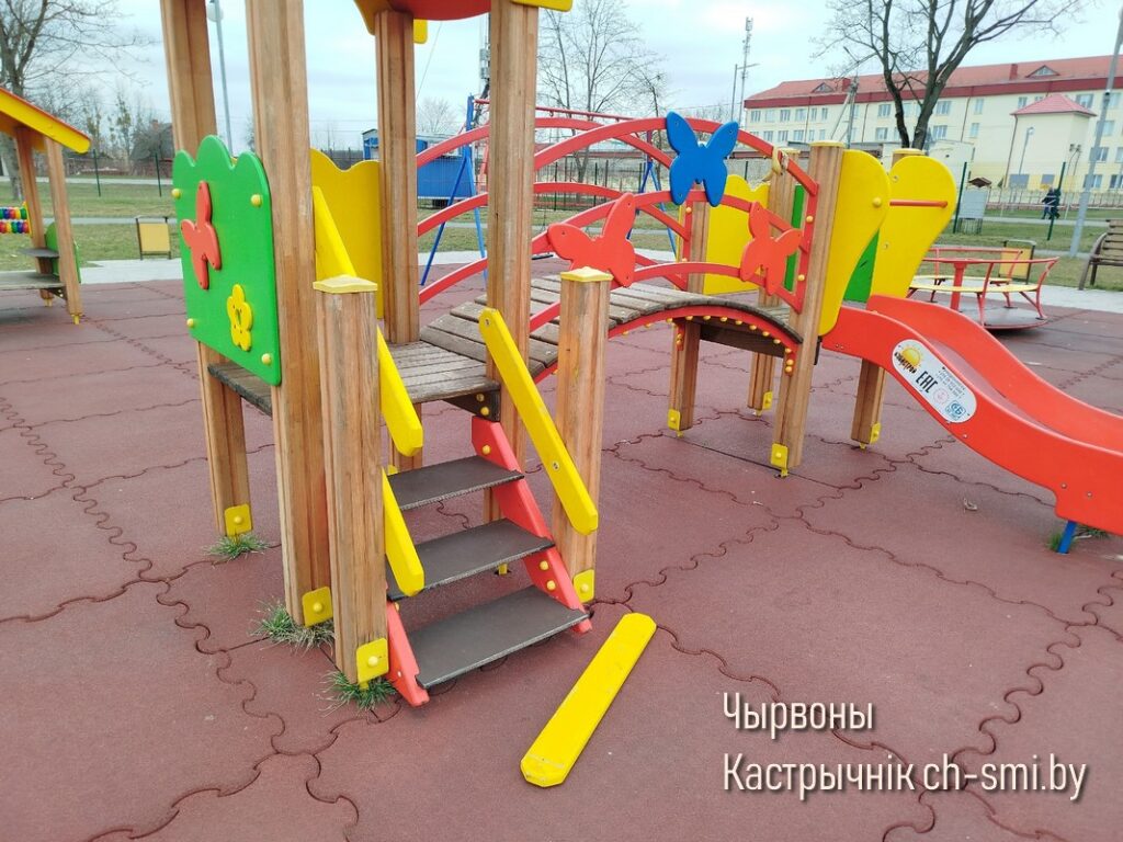Сейчас на спортивно-игровой площадке, как видим на фото, на тренажерной площадке на одном из велотренажеров нет сиденья, а на горке для малышей оторвана деревянная доска. И если последний недостаток можно устранить быстро: просто прикрутить доску, то сиденье нужно еще поискать…