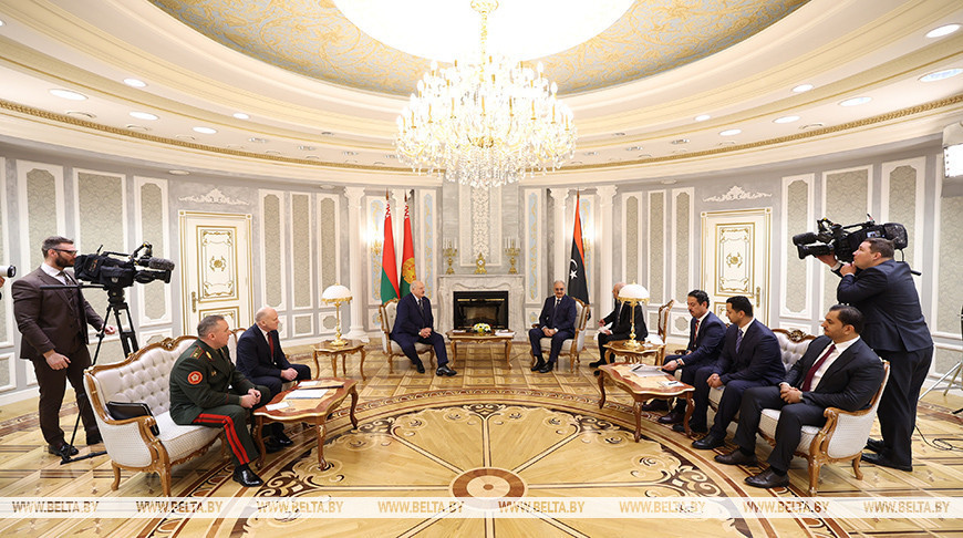 Беларусь готова развивать сотрудничество с Ливией. Об этом Президент Беларуси Александр Лукашенко заявил на встрече с фельдмаршалом и верховным главнокомандующим Ливийской национальной армией Халифой Белкасимом Хафтаром, передает корреспондент БЕЛТА.