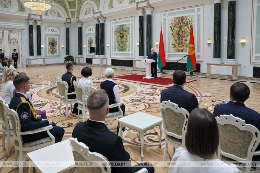 «Я, когда смотрю на наших отличившихся девушек и юношей, думаю: все бы такие были, у нас бы никогда не было проблем. И мы были бы богатыми. Потому что страна богата тогда, когда есть мозговитые, трудолюбивые люди, а не только то, что Господь в землю положил. Поэтому у нас есть вы — есть будущее страны», — подчеркнул белорусский лидер.