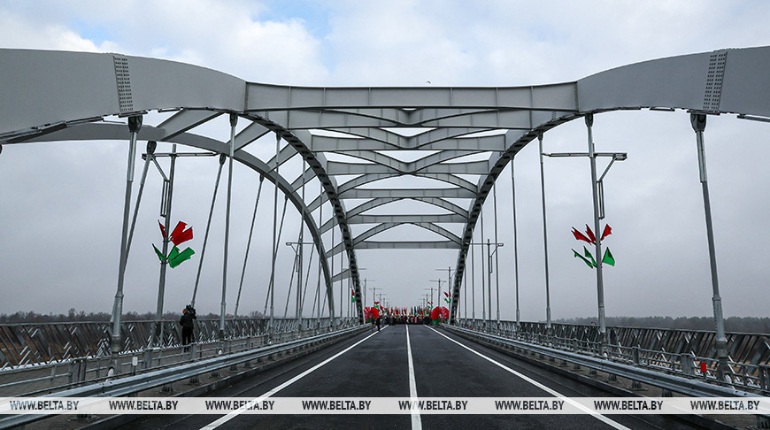 Глава государства в торжественной обстановке перерезал символическую красную ленточку. На церемонию были приглашены представители трудовых коллективов дорожных организаций, участвовавших в строительстве моста, жители Мозырского района. По сложившейся традиции ко Дню Октябрьской революции людям преподносят подарки — значимые, масштабные объекты, и обновленный мост — один из них.