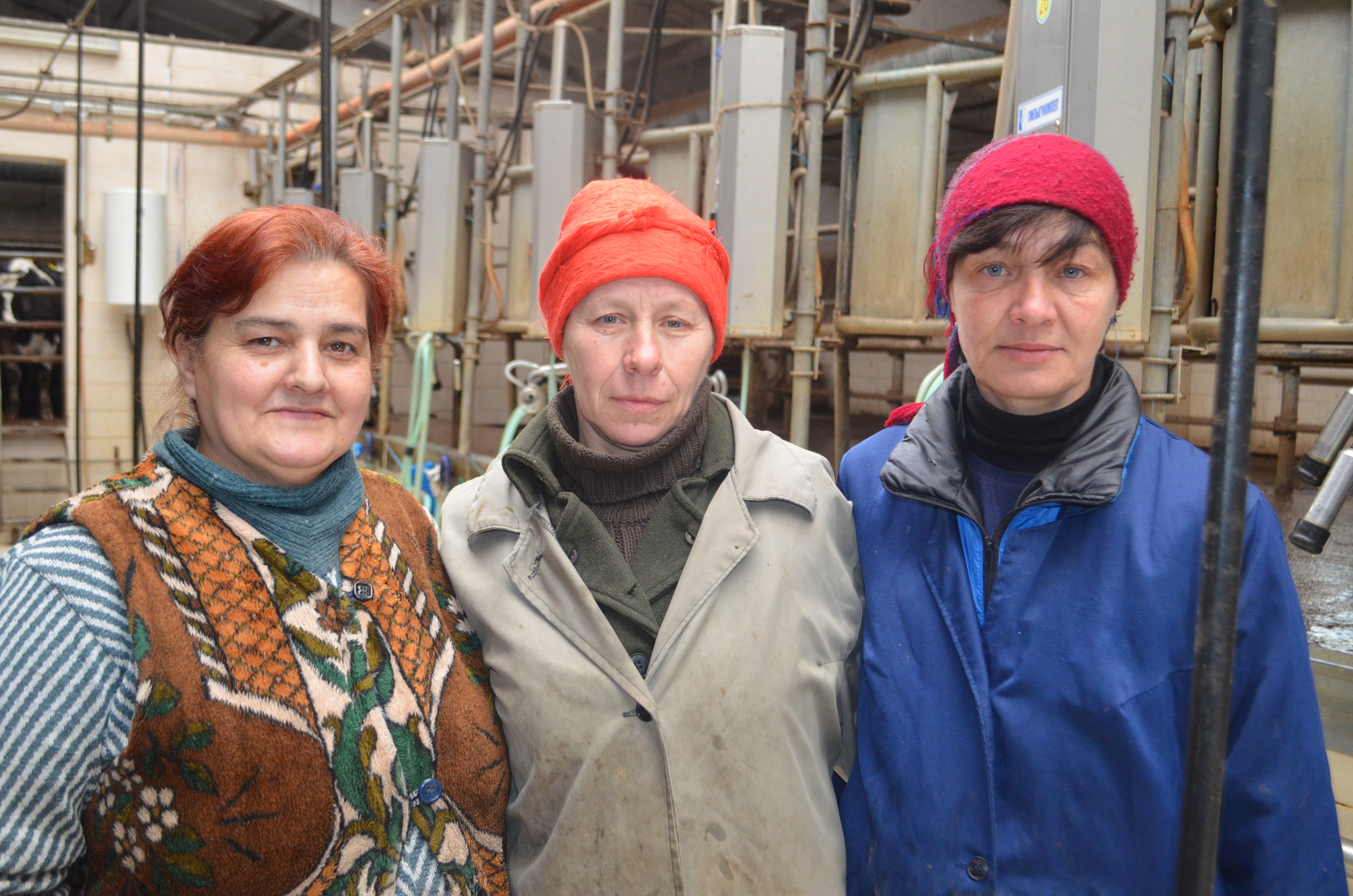 Операторы машинного доения на ДМБ новодубровского комплекса Ирина Хачатрян, Алла Забродская, Валентина Варламова.