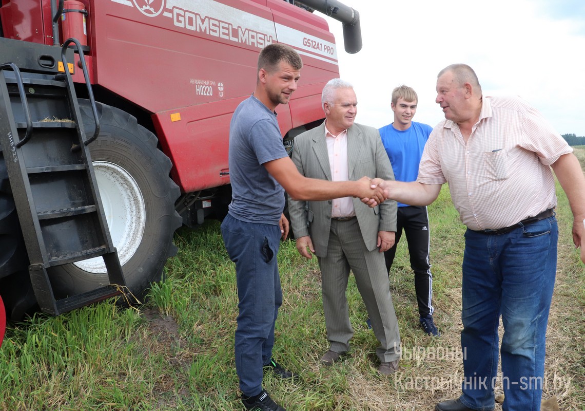 В целом на уборке зерновых в ОАО «Бумажкова-агро» задействованы 2 зерноуборочных экипажа и пока один самосвал МАЗ на перевозке от комбайнов на зерноток собранного урожая. Когда проводилась проверка, в отдаленном урочище Старищи на обмолоте озимой ржи был задействован экипаж КЗС-1218 в составе Олега Маскальчука и Петра Щербина. Второй комбайн КЗС-10 экипажа Виктора Левковича и Вячеслава Щура в тот день из-за поломки находился на мехдворе. Комбайнеры занимались устранением неисправности, а к вечеру их «степной корабль» уже был готов к выходу в поле.