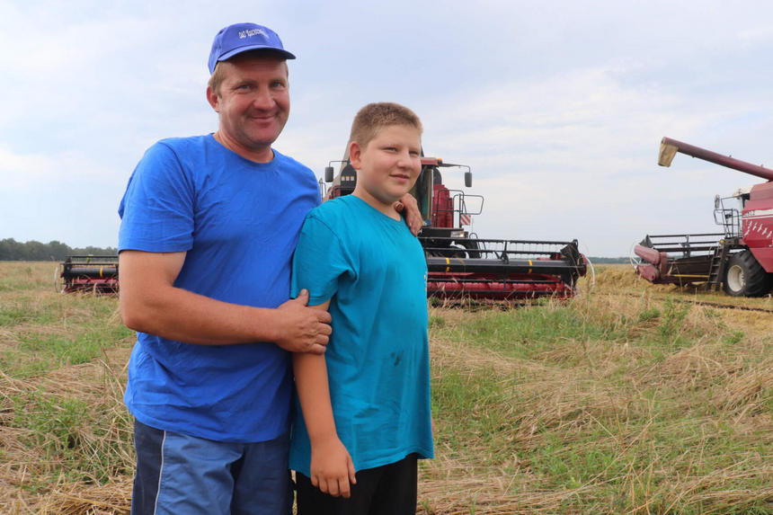 Попросили помочь хозяйству и нынешним сезоном. Тот не отказался. Когда искал помощника, Саша подумал, почему бы не взять сына. Причем, Андрей не первый, кто из детей Цагельников садится с отцом в кабину комбайна. У многодетного отца три дочери, и каждой выпал шанс почувствовать, как нелегко убирается хлеб. Все девчонки и на зернотоку местному хозяйству помогали. Теперь их сменил младший брат. Он с удовольствием проводит время на родных  полях. И, судя по всему, его выбор абсолютно взвешенный. Вместо отдыха с друзьями предпочел работу в поле. Учится разбираться не только в тоннах и центнерах, но и гайку ключом может подкрутить, не боясь испачкаться в мазут. Впрочем, ответственность за исправность комбайна делят с отцом пополам. Технику к выходу в поле готовят тоже вместе. Александр гордится, что вырастил таких помощников, которые не только дома похозяйничают, но и в поле его правая рука.