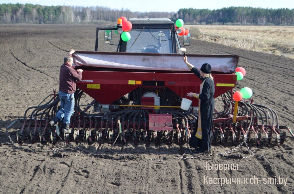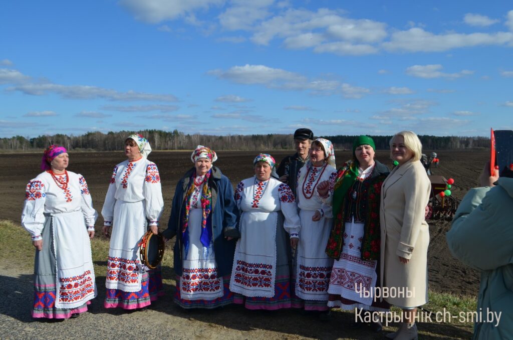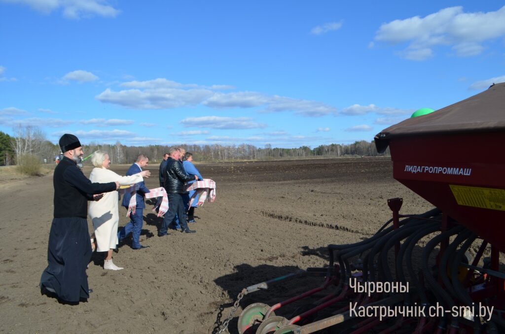Здесь же, на яровом поле, председатель райисполкома Ирина Намоченко и руководители хозяйств Октябрьщины согласно с действиями народного обряда и под песни, прославляющие труд хлеборобов в исполнении самодеятельных артистов, провели засевки под урожай 2025 года.