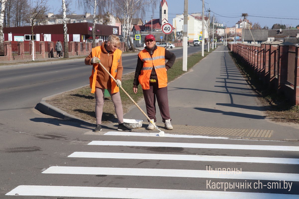 На улицах Октябрьского работники КЖУП «Октябрьское» наносят дорожную разметку Благоустройство 25 Мар 2026 14180