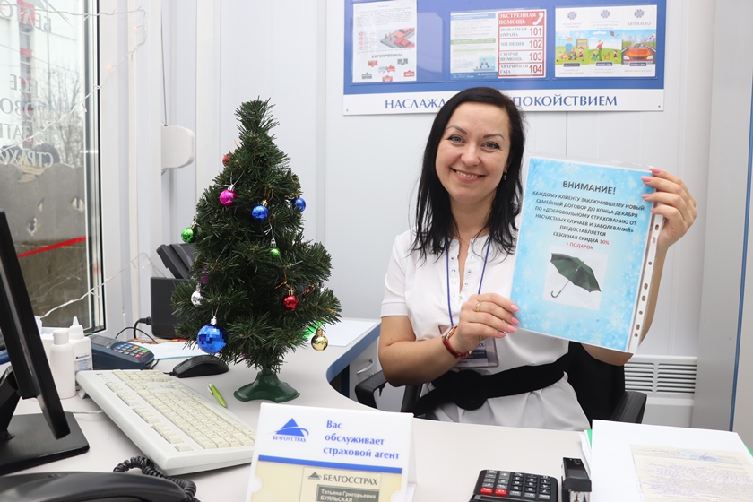 Итак, если вы не смогли оформить полис со своим страховым агентом, то в любое удобное время можно получить услуги непосредственно в точке продаж, где вас обслужит Татьяна Буяльская. Она вежливо предложит все, что можно застраховать от несчастных случаев и непредвиденных жизненных обстоятельств. Более того, Татьяна Григорьевна, не просто оформит страховку, а подберет под финансовые возможности и требования клиента, то, что ему выгодно.Это, пожалуй, тот случай, когда от твоего отношения с клиентами зависит и их количество, и, соответственно, выполнение доведенных планов, поясняет Татьяна Григорьевна. К тому же, в новом павильоне созданы все удобства для комплексного обслуживания. Помещение хоть и небольшое, но удобное и современное. То есть,здесь соблюдены все условия, чтобы и специалистам, и клиентам было практично и комфортно. Кроме того, создан удобный график работы. Можно прийти в субботу.Есть возможность производить оплату как наличными денежными средствами, так безналичным путем. Установлено оборудование, благодаря которому можно рассчитаться пластиковой картой. Вместе с тем, специалисты рассказывают клиентам как производить оплату страховых услуг через сайт кампании, или же через единую систему ЕРИП, что очень удобно и практично. Но от этого количество клиентов в Октябрьском филиале не уменьшается. По старой привычке люди идут к страховым агентам, чтобы получить на руки документ о заключении страхового полиса, делится рабочими моментами Татьяна Буяльская: