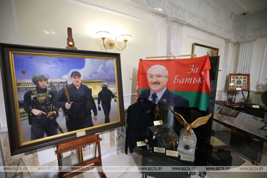 Чуть позже, по пути из одного зала в другой, женщина остановится у фотографии сына. На снимке Олег Новицкий запечатлен с Александром Лукашенко. Рядом с фотографией — сувениры, которые космонавт передал главе государства. Валентина Новицкая во время вручения ордена Дружбы народов была во Дворце Независимости вместе со своим сыном. На экскурсии она открыла для себя много нового. Больше всего ей запомнился Зеленый зал. В 2015 он стал известен во всем мире как место, где прошли переговоры лидеров стран «нормандской четверки» — России, Украины, Франции Германии.