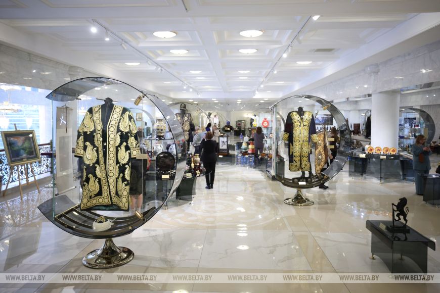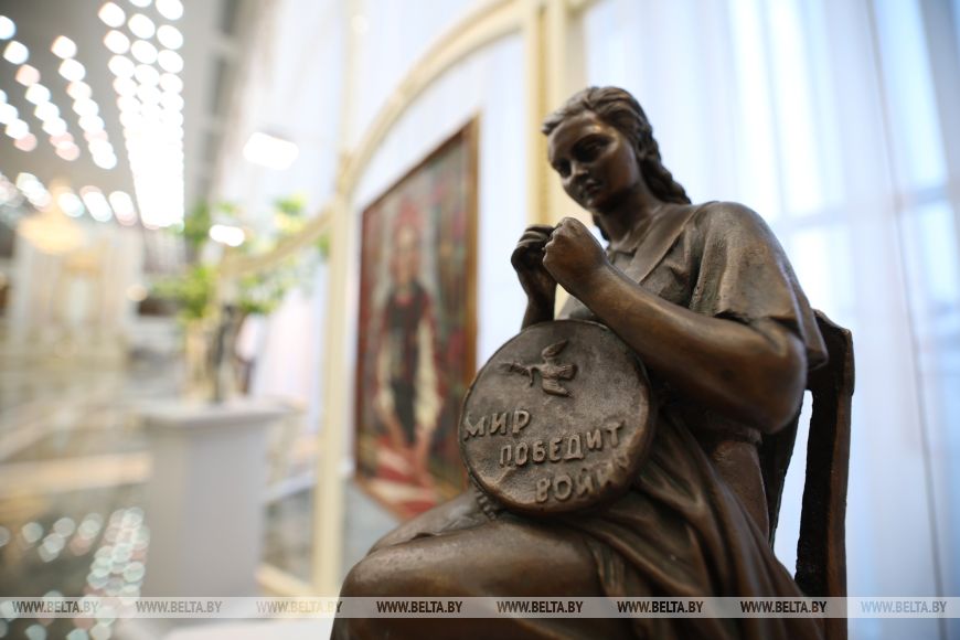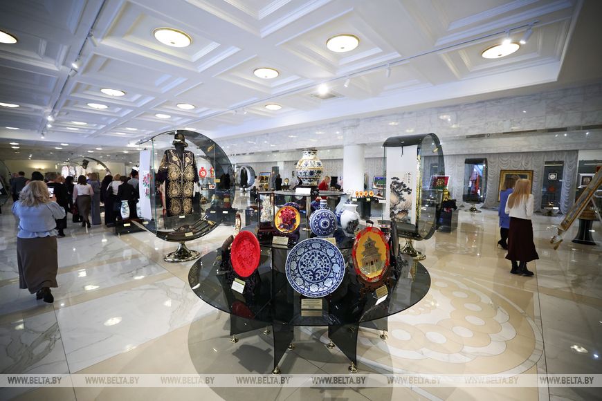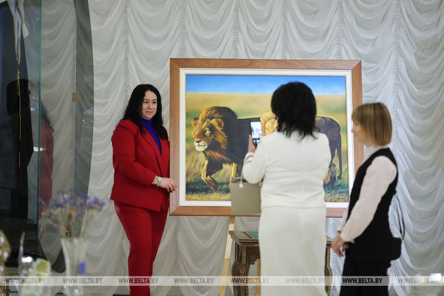 Экскурсионный маршрут традиционно начинается в Зале торжественных церемоний. Самый масштабный и вместительный во всем Дворце Независимости зал украсила выставка, которая посвящена Году белорусской женщины и 8 Марта. Произведения белорусских художников XX и XXI веков, объединенные в выставку под названием «Это все она», органично вписались в местные интерьеры и не остались без внимания гостей. Работы мастеров живописи и скульптуры изображают героинь с их историями и характерами. Одним из лейтмотивов выставки стала роль женщины в обществе, которая по-настоящему многогранна и проявляется не только в семье, но и в профессиональной и общественной деятельности.