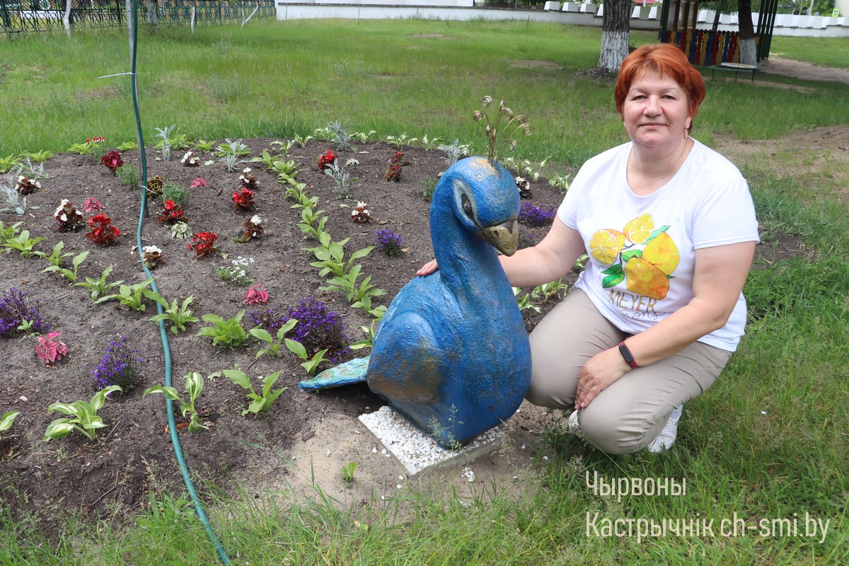 Идея совместная, рассказала заведующая дошкольным учреждением Татьяна Александровна. А особенно постаралась и приложила свои золотые руки кастелянша Светлана Довыдовская. Она представила, что клумбу с цветами можно вполне дополнить объемной фигурой. Получилось неплохо. Из пенопласта Светлана Григорьевна вырезала большую птицу, разукрасила ее красками, и получилось лучше, чем сама ожидала. Теперь павлином талантливой мастерицы любуются воспитатели, родители вместе с детьми. А территория – словно сказочный мир. Кстати, чуть ранее, в здесь обустроили клумбу из экологически-чистого природного материала — дерева. Сделали паровозики, а рядом — деревянные скамейки. Все это для того, пояснила Татьяна Куляй, чтобы дети не только отдыхали, но и учились ценить и беречь природу.