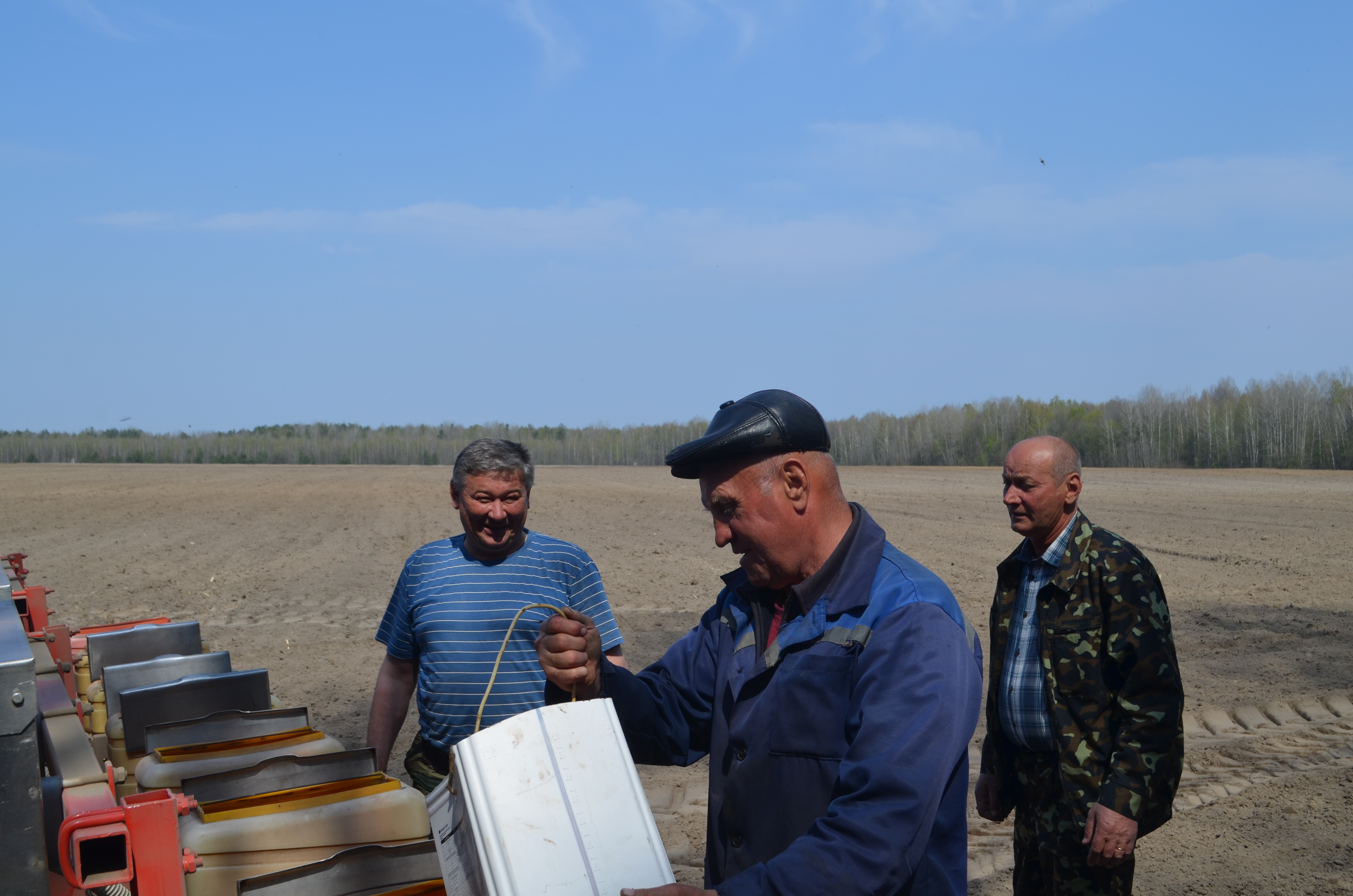 Сергей и Олег Москальчуки трудились подальше – среди леса в урочище Пнище (в районе деревни Иванищевичи). В тот же день на этой ухоженной большой поляне, где по осени подняли зябь, весной в достаточном количестве внесли органику, а также хлористый калий и мочевину из расчета по 2 центнера на гектар, начался сев кукурузы. Он доверен механизатору Владимиру Ахраменко, имеющему большой опыт сеятеля за долгие годы работы в ОАО «Бумажкова-агро». Трактор МТЗ-1221, как и сеялка ТСМ-8000, не подводят, а своевременную засыпку семян в бункеры посевного агрегата обеспечивает полевод Анатолий Рыжков.