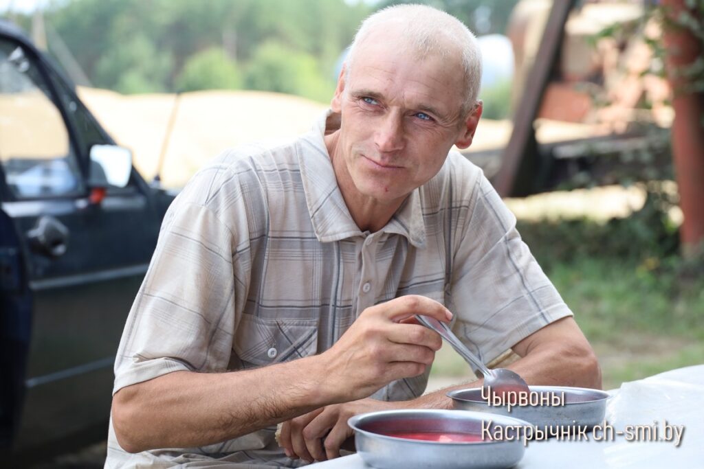 Механизаторы трудятся в горячую пору с рассвета до заката, поэтому задача руководства хозяйств – организовать полноценное питание этих людей на местах. В Октябрьском районе данная работа уже давно хорошо налажена. О том, как питаются хлеборобы ОАО «Краснослободское», мы поинтересовались во время их обеда. А отправились на поля хозяйства вместе с поваром Тамарой Креч. Она уже с самого утра приготовила для механизаторов и комбайнеров комплексный обед. В этот день он состоял из борща-свекольника и макаронов с котлетами. Вдобавок к этому – чай и бутылка газированной воды. Объемы у порций большие, а запах у свежеприготовленных блюд – отменный, домашний.