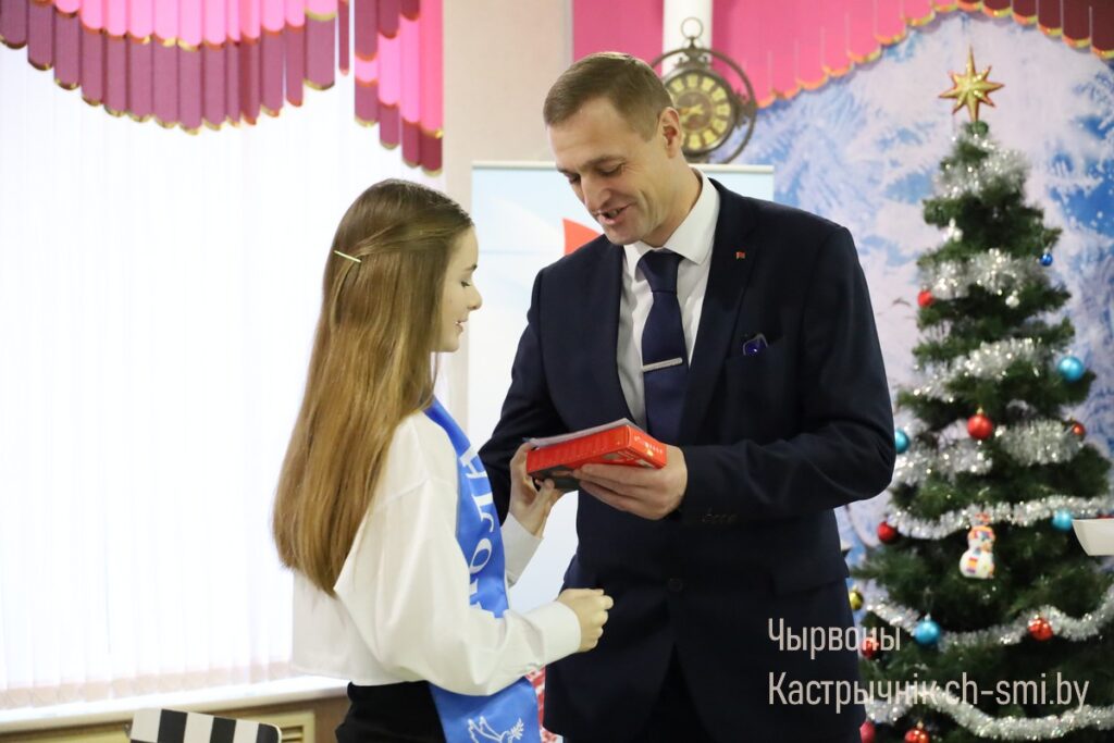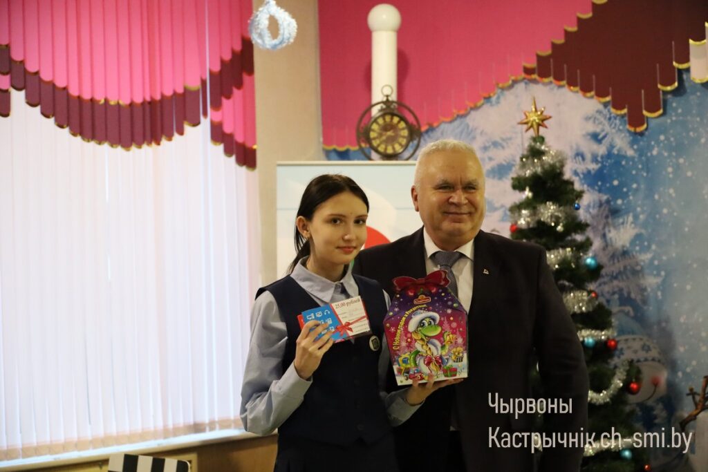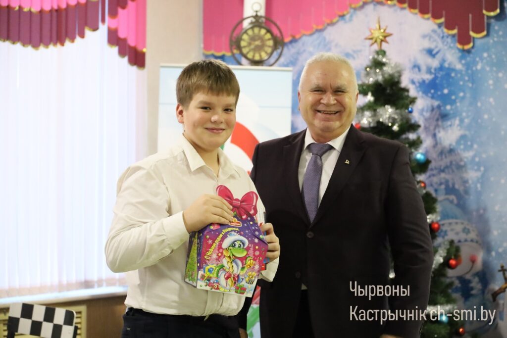 С наступающим Новым Годом, успехами в учебе поздравил ребят заместитель председателя Октябрьского райисполкома Александр Шульц. Он отметил, что во время благотворительной акции «Наши дети» уделяется внимание не только ребятам, попавшим в трудную жизненную ситуацию. Но и тем, кто своим трудом, упорством, усердием добивался хороших результатов в учебе, спорте, творчестве. Александр Анатольевич пожелал учащимся не останавливаться на достигнутом, ставить цели и преодолевать их.