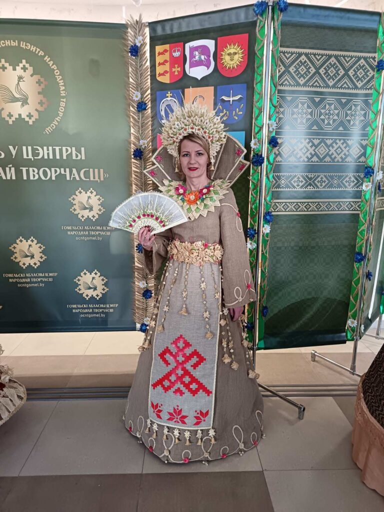 Как рассказала заведующий филиалом дома ремесел Татьяна Холодок, наряды носили собирательный образ и представляли ценности каждого региона Гомельщины. Конкурсантки в платьях дефилировали под этническую народную музыку. Наряд мог быть изготовлен из любого материала. Учитывалось и присутствие народных головных уборов, аксессуаров, украшений в этностиле. Октябрьские мастерицы представили платье из льняной ткани с элементами соломоплетения и аппликаций из соломки. За основу образа был взят бренд Октябрьщины – фестиваль «Берагіня». Дефилировала в искусно созданном наряде с короной из соломки мастер народно-художественных ремесел Ирина Добрянская. Кстати, она же сама и работала над созданием образа. Как итог — октябрьские мастерицы заняли почетное III место.