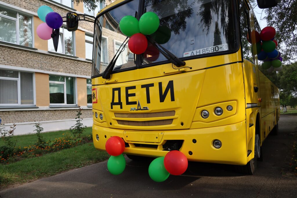 * Учащиеся Поречской средней школы получили 1 сентября отличный подарок — новенький комфортный автобус.