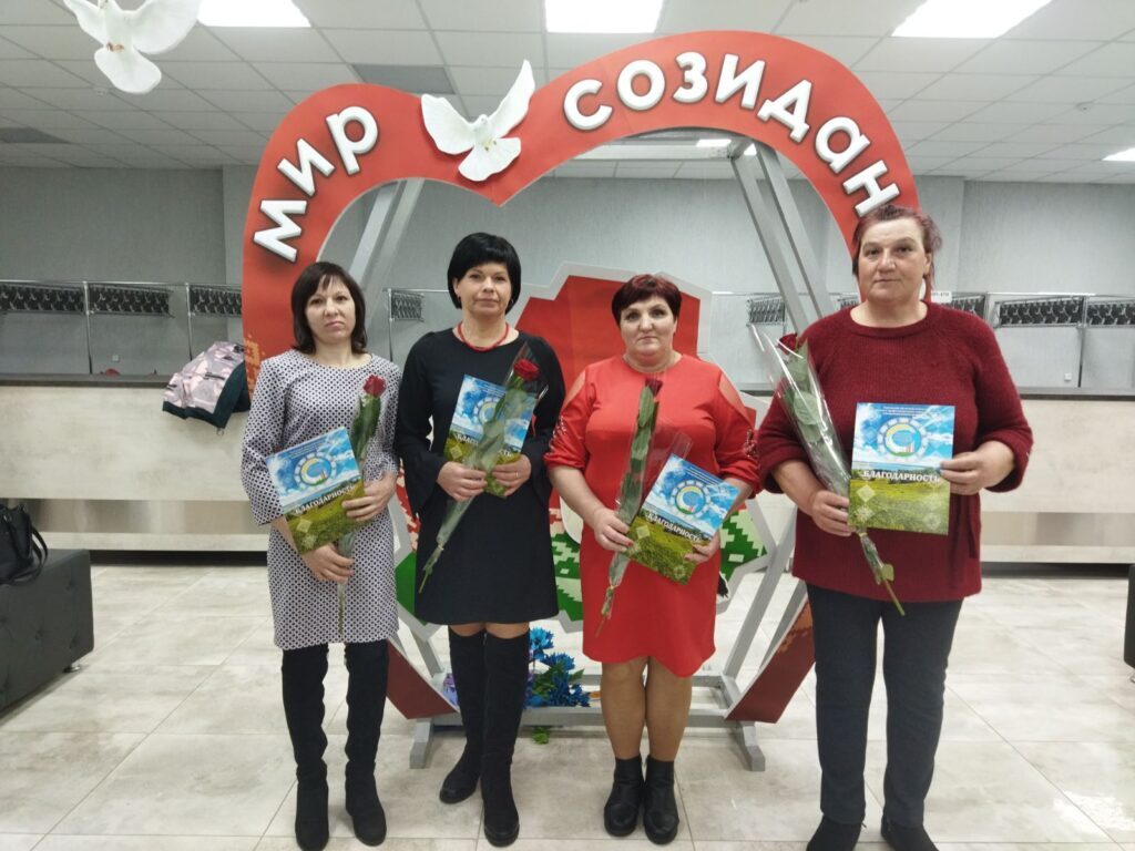 *Четверо работниц молочнотоварных ферм Октябрьского района (Лилия Хенченко, Татьяна Белая, Людмила Сидоренко, Нина Мигун) были отмечены на уровне области за достижение высоких показателей в производстве сельхозпродукции в рамках республиканской акции «Наш животновод».