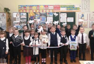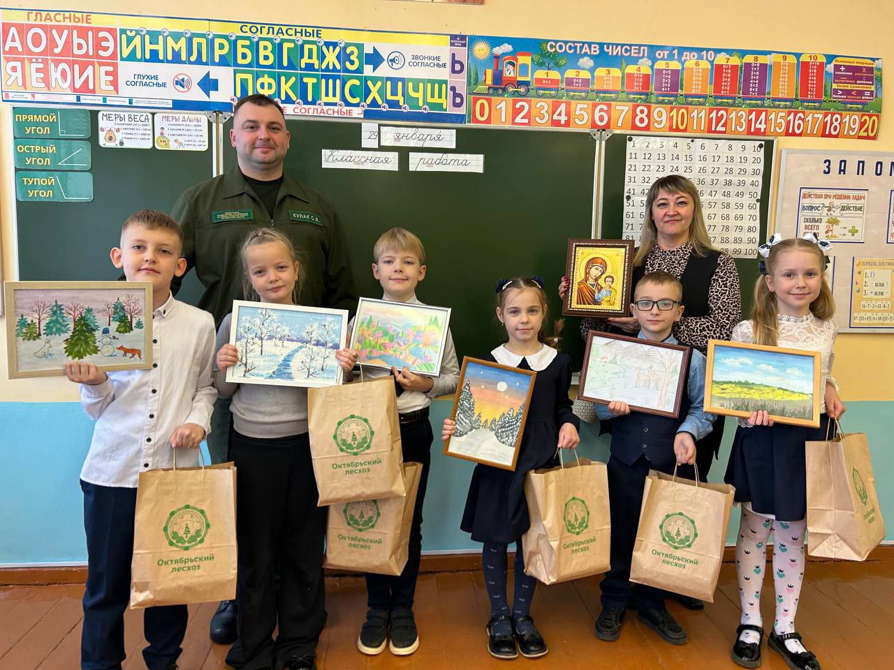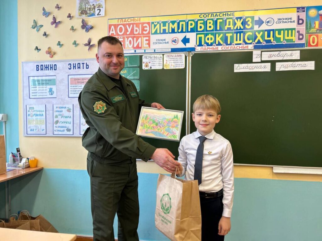Заместитель руководителя организации по идеологической работе Сергей Кулак поблагодарил учащихся и их классного руководителя Татьяну Круглову за активное участие в выставке творческих работ и вручил символические подарки.