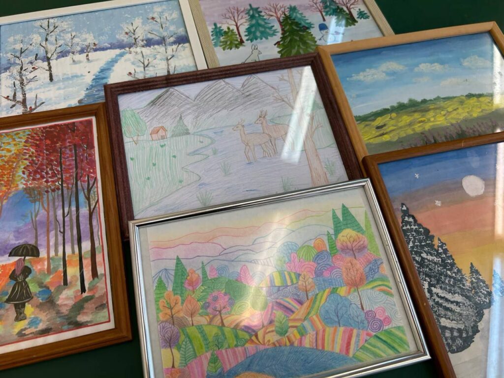 Юные художники изобразили обитателей лесов, весеннее пробуждение природы, зимние пейзажи, а также вечерние закаты в лесу.