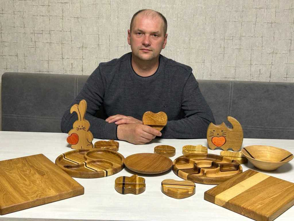 Но есть у Николая и своё увлечение – это столярное дело, которым он занимается более двадцати лет. Его мастерская – это место, где создаются настоящие шедевры: разделочные доски, менажницы, тортовницы, подставки для телефона, сувениры. Из наиболее крупных и сложных работ – это обеденные столы, стулья, скамейки и лестницы.