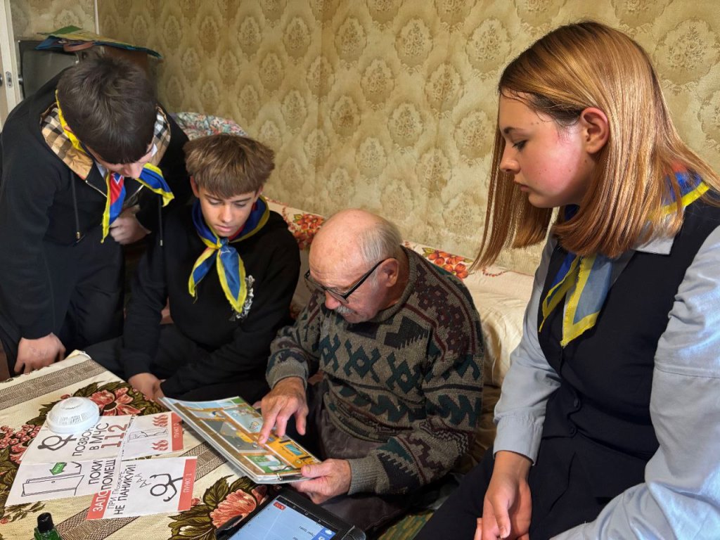 Николай Тарасович Маслов живет в квартире один. Помогать по хозяйству к нему приходит социальный работник Наталья. Однако, порой возникают бытовые задачи, с которыми даже ей бывает непросто справиться. Поэтому появление юных помощников в сопровождении сотрудников МЧС оказалось очень своевременным. Ребята помогли установить шкафчик для новой газовой панели. Вместе с инспектором по пропаганде районного отдела по чрезвычайным ситуациям Ольгой Вежновец, ребята провели беседу о правилах пожарной безопасности, рассказали о необходимости установки автономного пожарного извещателя, напомнили телефоны экстренных служб, нашли опасности, подстерегающие в квартире.
