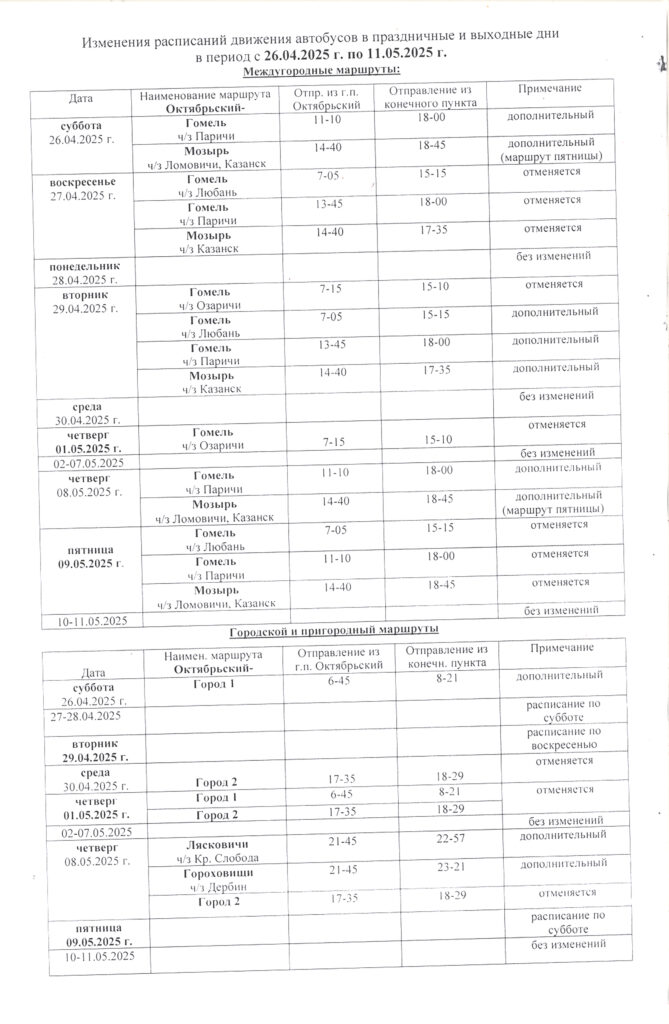 Октябрьский. Расписание движения автобусов в выходные и праздничные дни Важное Общество 26 Апр 2025 3520