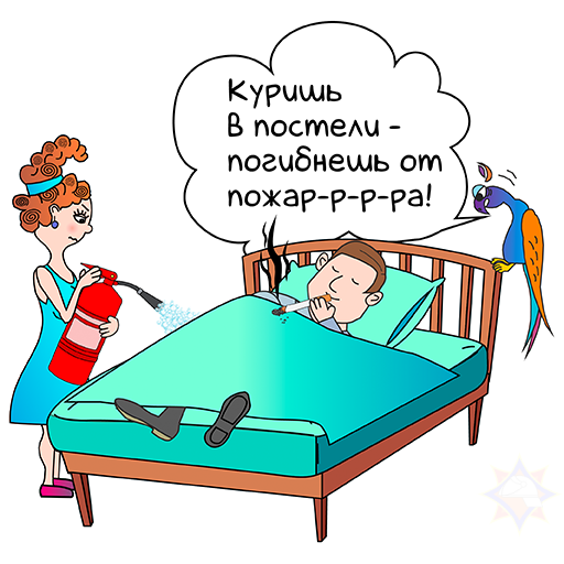 Не курите в постели и в других местах для сна. Не бросайте спички и окурки, убедитесь, что они полностью потушены. Не курите рядом с легковоспламеняющимися материалами и горючими жидкостями.