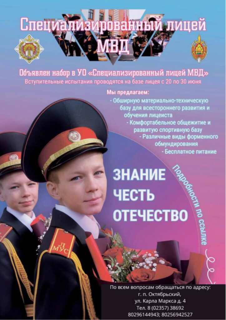 Октябрьский РОВД приглашает поступить в специализированный лицей МВД РОВД информирует 18 Ноя 2025 770