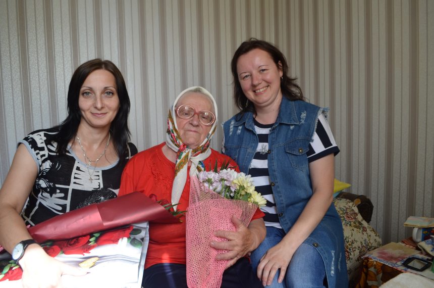 На снимке: с 80-летием ветерана сферы культуры района Веру Жинко поздравляют профсоюзные лидеры отдела идеологической работы, культуры и по делам молодежи райисполкома Светлана Шейко (слева) и Светлана Мордус.