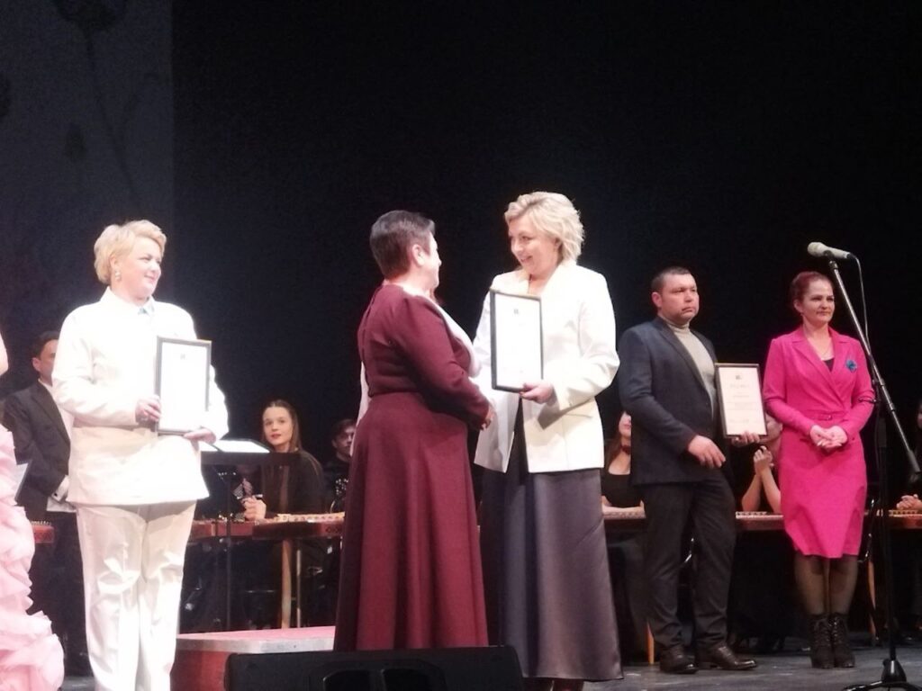 Узнагароду ўручыла старшыня грамадскага аб’яднання «Беларускі саюз жанчын» Вольга Шпілеўская: