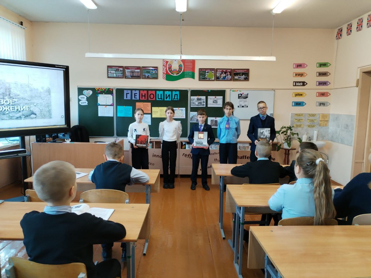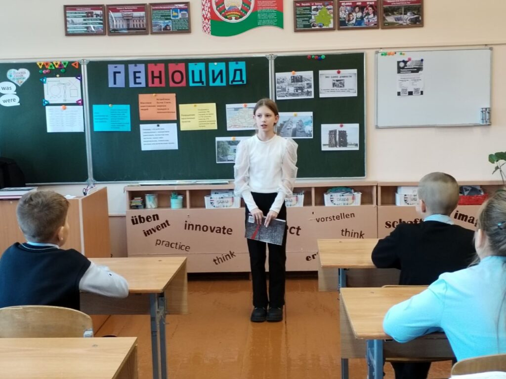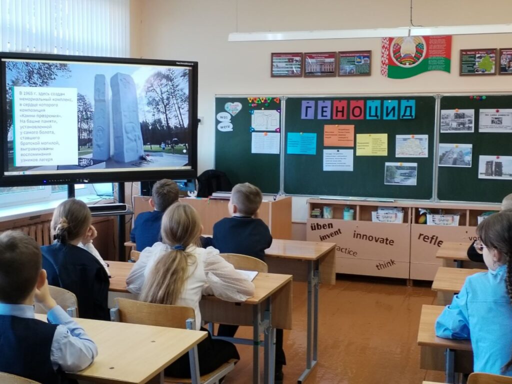 В 5 «Б» классе Октябрьской районной гимназии прошёл информационный час «Геноцид белорусского народа. Места принудительного содержания и уничтожения населения».