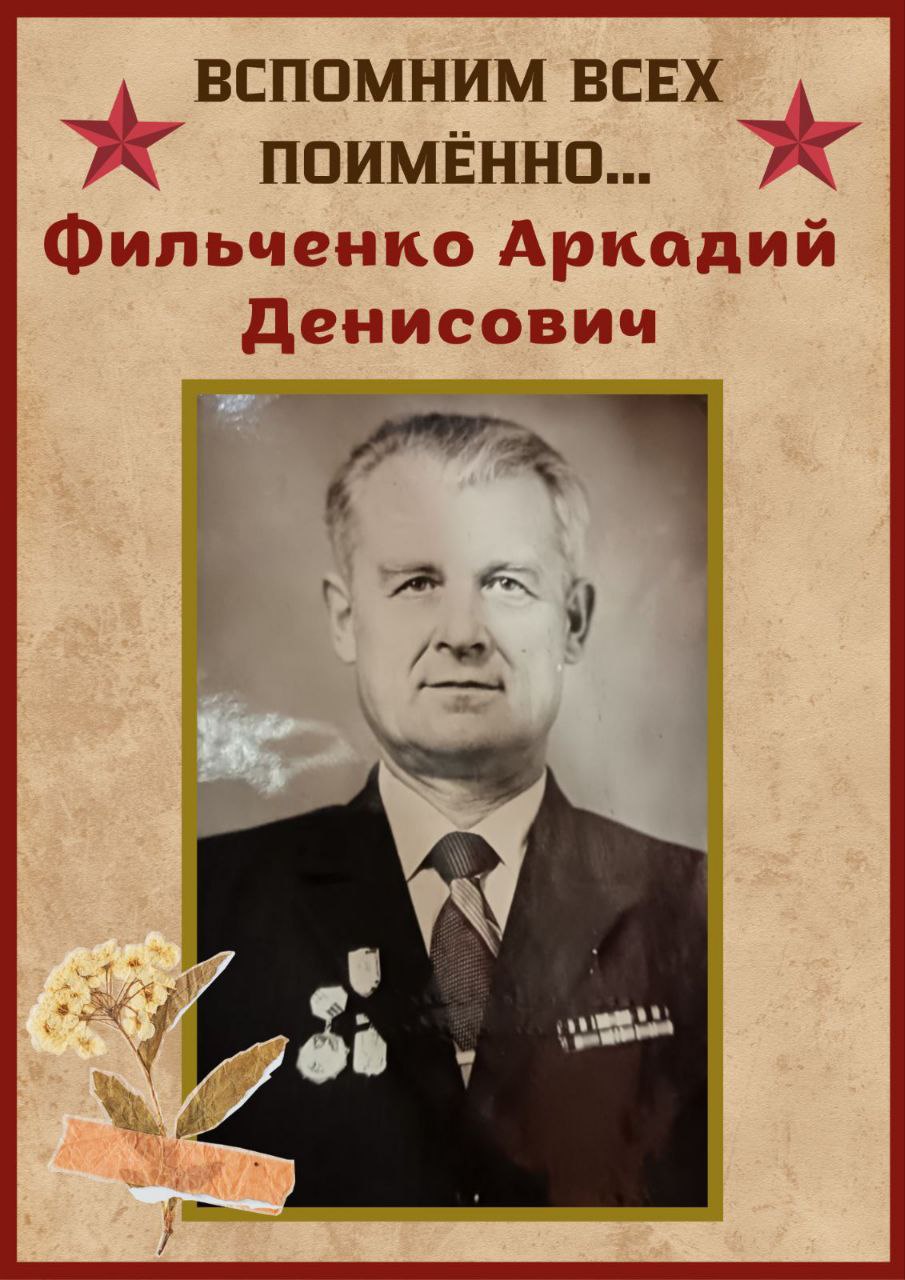 Фильченко Аркадий Денисович родился в 1922 году в деревне Ратмировичи Октябрьского района.