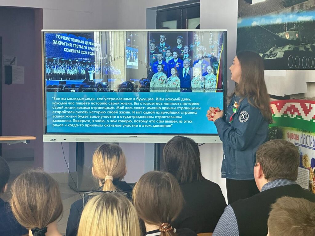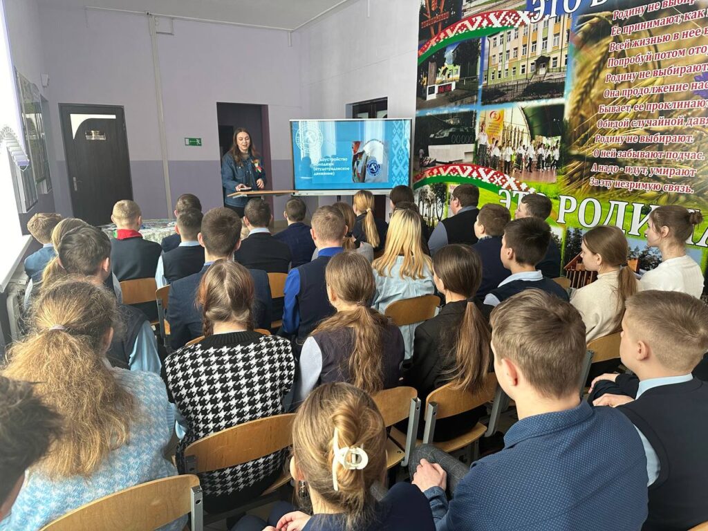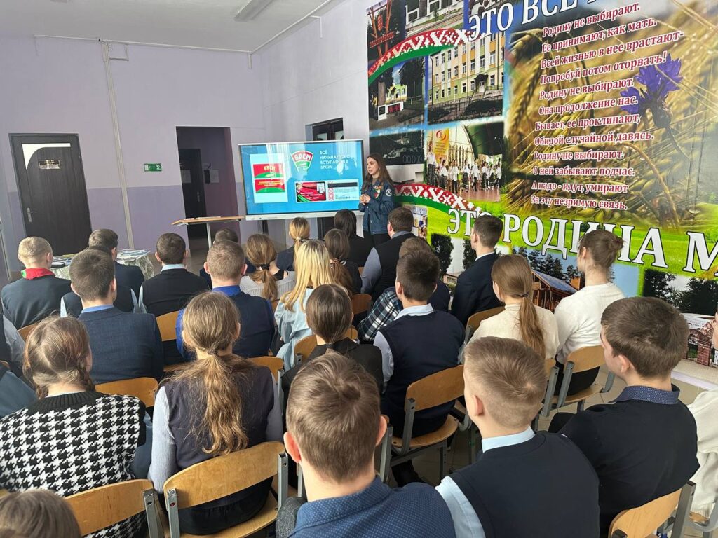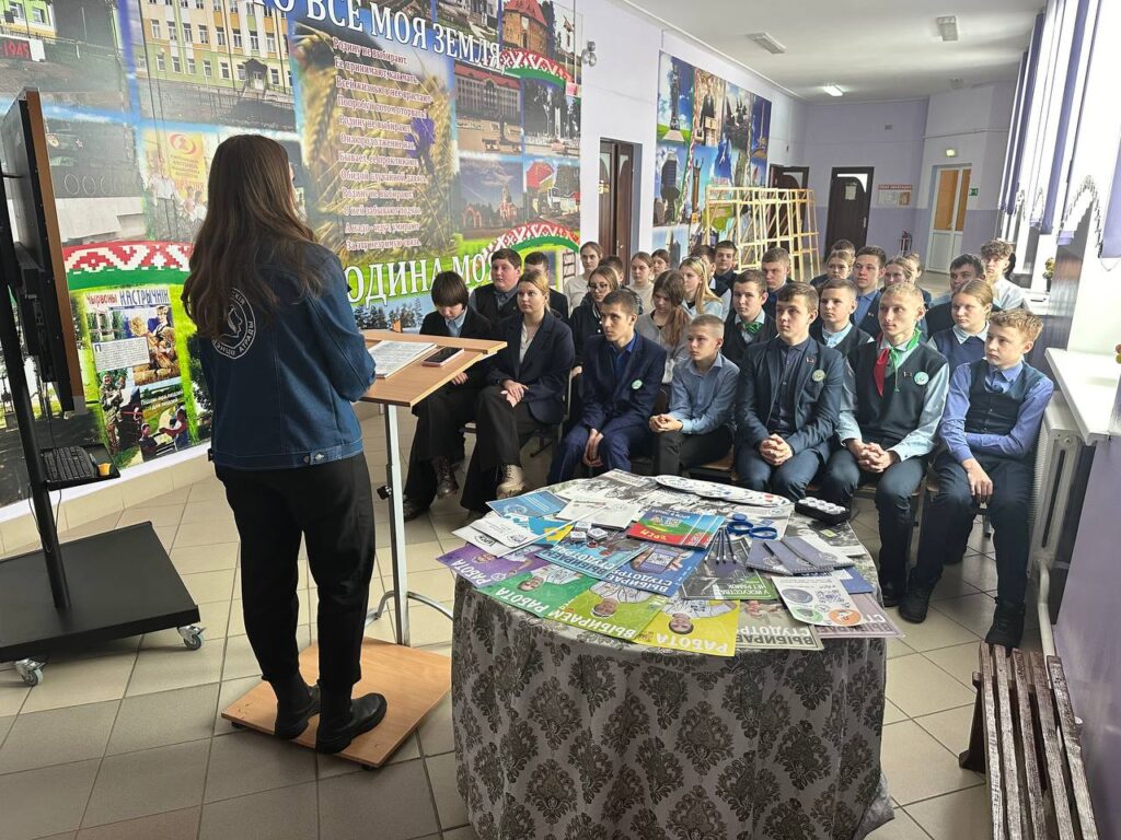 С агитацией для занятости в БСО на каникулах перед учащимися 9 класса средней школы №1 г. п. Октябрьский выступила Первый секретарь Октябрьского РК ОО БРСМ Циуля Ирина Сергеевна.