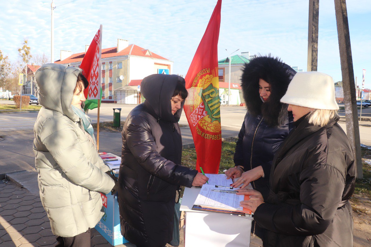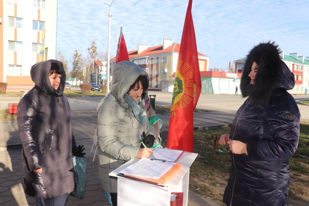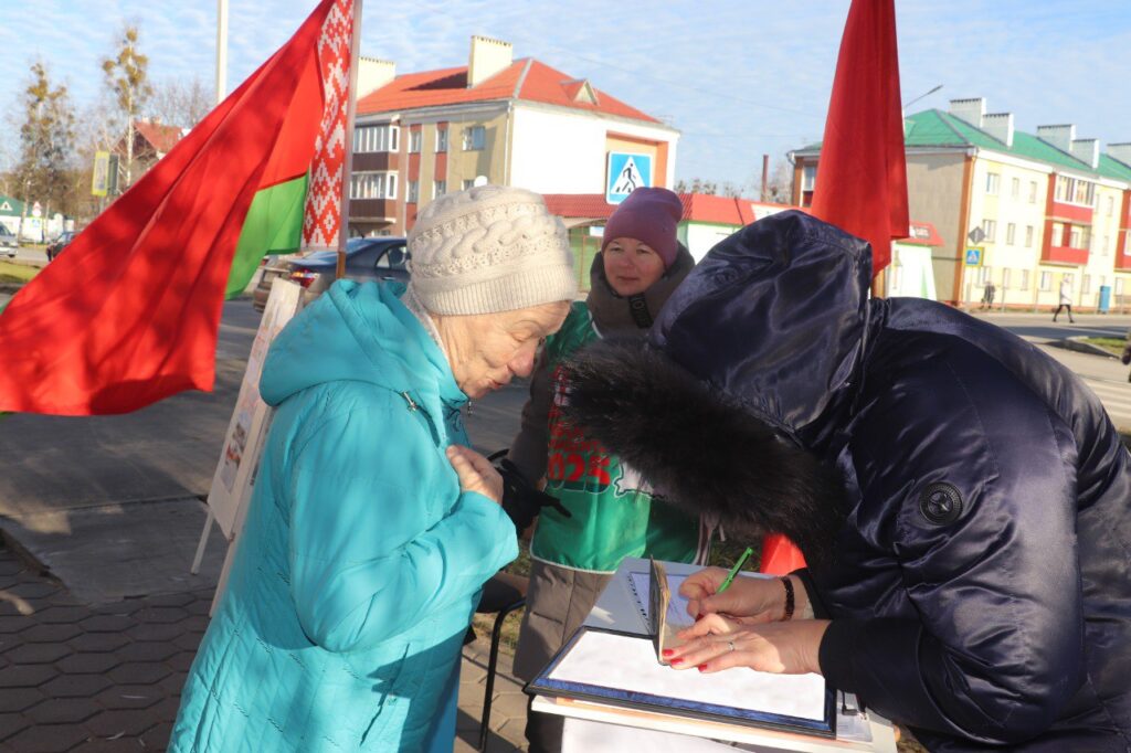 Пикеты по сбору подписей в поддержку выдвижения кандидатов в Президенты Республики Беларусь проходят в г.п. Октябрьский ВЫБОРЫ-2025 26 Ноя 2024 1600 Сбор подписей проходит до 6 декабря. Зарегистрированным инициативным группам необходимо собрать не менее 100 тысяч подписей. Поставить подпись можно за несколько кандидатур, но только единожды в поддержку одной и той же.