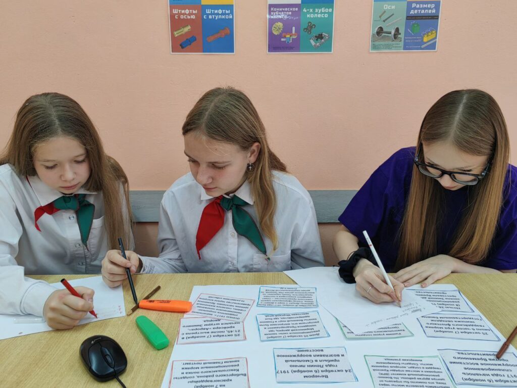 В ходе встречи пионеры-лидеры создали информационный листок «1917. Знай свою историю» и стали участниками интеллектуальной викторины в формате «Что? Где? Когда?» «Знатоки истории».