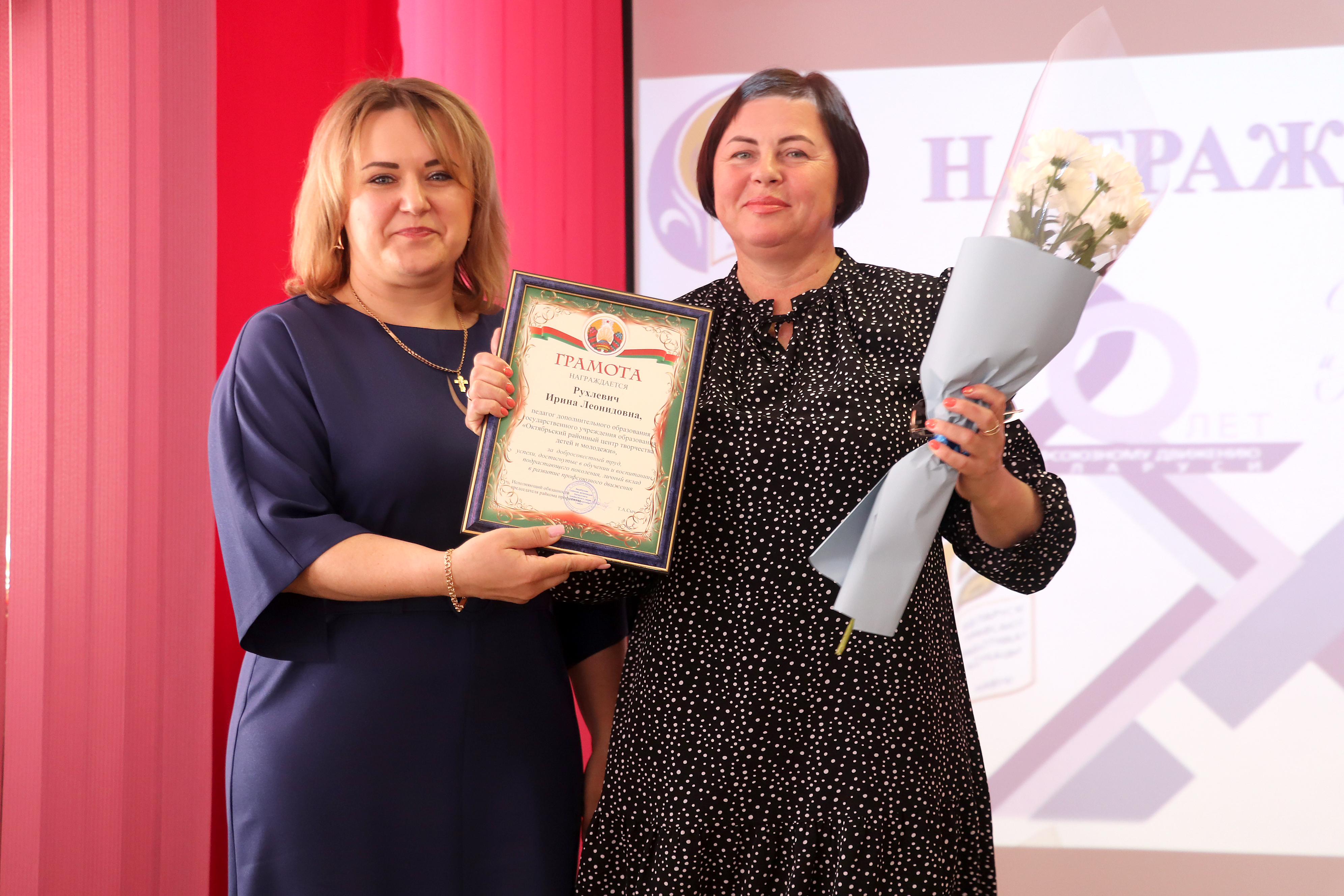 Наград у коллектива много. Ребята – постоянные призеры и победители республиканского творческого конкурса «Здравствуй, мир!». Готовятся к нему основательно и привозят заслуженные дипломы победителей. Последняя из наград – диплом I степени в нынешнем году на областном этапе. На республиканском – ансамбль «Вдохновение» завоевал диплом II степени. За всеми наградами большая, кропотливая работа педагога вместе с детьми. Чтобы выступить достойно, подготовку к конкурсу начинают за год вперед. Готовятся основательно, ведь там собираются лучшие исполнители. Как итог – триумф. С таким активным и целеустремленным преподавателем по-другому быть не может. На прошлой неделе Ирине Рухлевич в рамках отчетно-выборной конференции Октябрьской районной организации Белорусского профсоюза работников образования и науки была вручена Грамота за добросовестный труд, успехи, достигнутые в воспитании и обучении подрастающего поколения, личный вклад в развитие профсоюзного движения. Впереди – большая работа, много планов, идей, выступлений. И все ради юных дарований, их творчества, умения и талантов. А еще – ради благодарной публики.