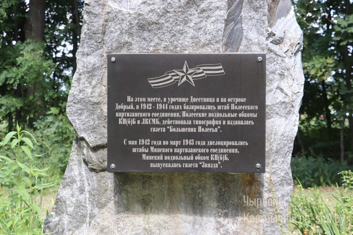 Лесные и болотистые места, куда не могли добраться фашисты, на определенное время стали местом дислокации партийных и советских органов даже из неблизкой столицы Беларуси. В деревне Репин в 1942 году размещалось командование партизанских бригад Минского и Полесского соединений, здесь развернул свою деятельность Минский подпольный обком КПБ и вышел в свет первый номер газеты «Звязда». После сильной бомбежки населенного пункта было принято решение перебраться на лесной остров Двесница недалеко от одноименной деревни.