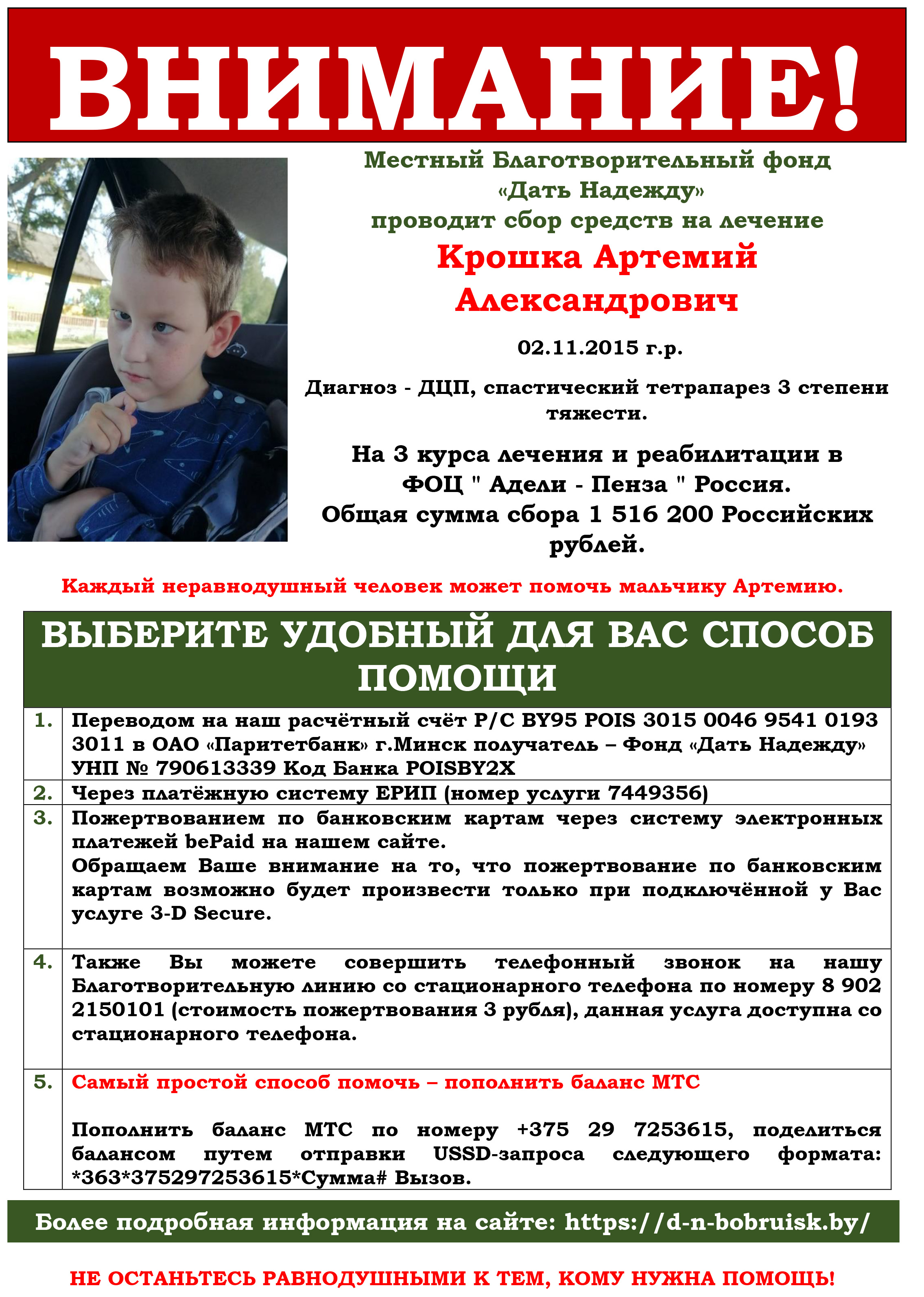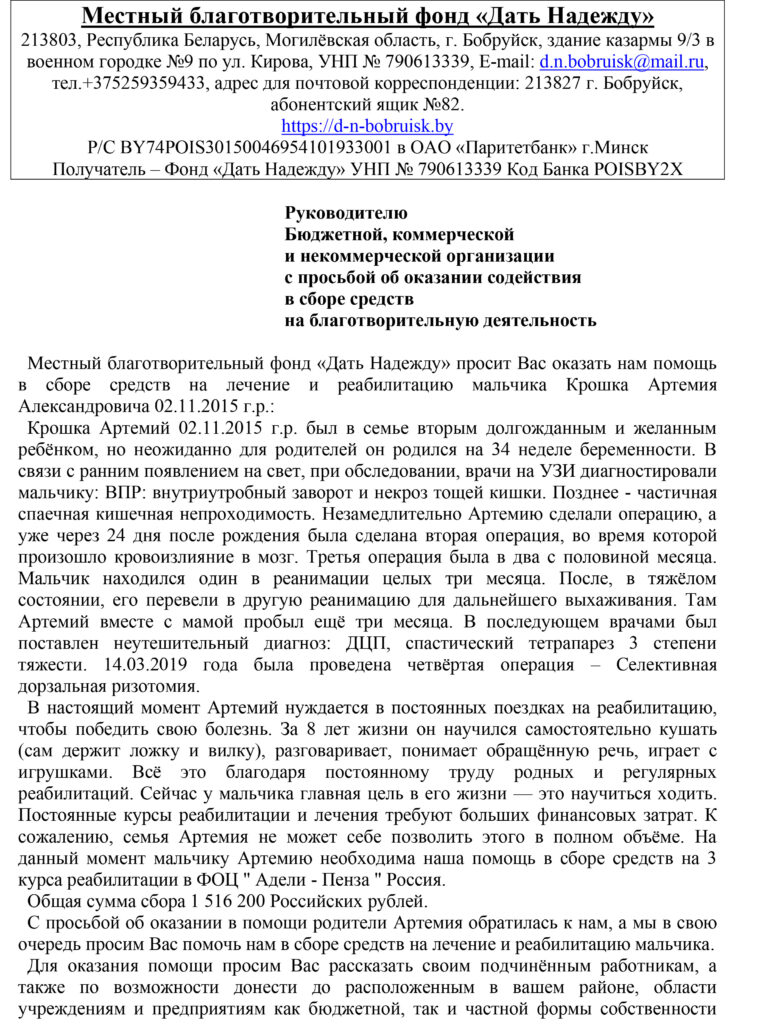Поможем Крошка Артемию собрать средства на лечение