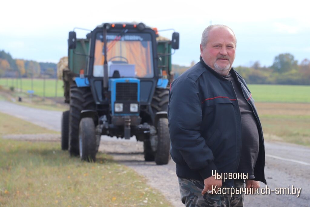 На отвозке кукурузы с осенних полей задействован опытный механизатор хозяйства Василий Кашаед. За его плечами тридцать семь аграрных сезонов. Уроженца агрогородка Любань, откуда пошел его фамильный род и где Василий сам всю жизнь прожил со своей семьей, никогда не покидало желание трудиться на земле. Оттого Василий Юрьевич на хорошем счету у руководства хозяйства. Все весенне-полевые, уборочные работы, заготовку кормов доверяют именно ему. С весны до осени механизатор на МТЗ «Беларус-82.1» в поле. Как только сойдет снег, приступает к развозке органики. Потом сеет. Приходит время – прессует сено и солому, задействован на отвозке кормов. Только успевает менять прицепные агрегаты к своему малогабаритному трактору. Сейчас Василий Кашаед отвозит с полей кукурузную массу на силос. Пару дней – и эти работы завершатся, но сельскохозяйственный год еще не окончен. Стараются все механизаторы, ведь с каждым днем в растениях все меньше влаги, а значит, и питательных веществ. Стебли, как правило, начинают подсыхать снизу, поясняет тракторист.