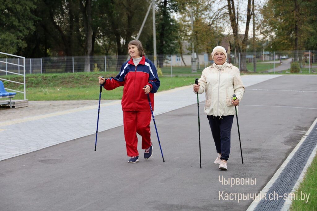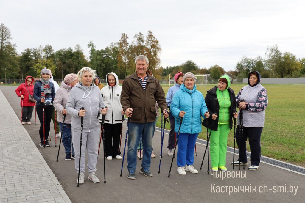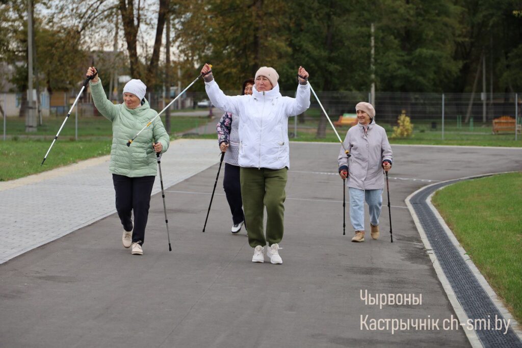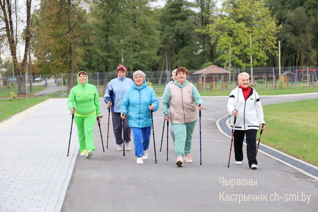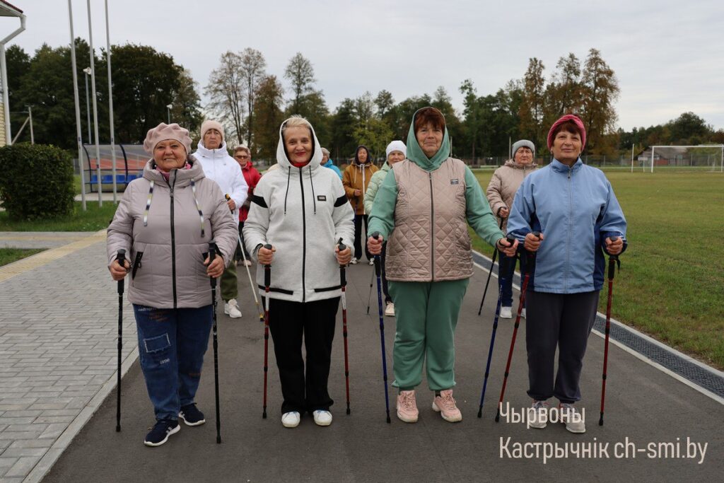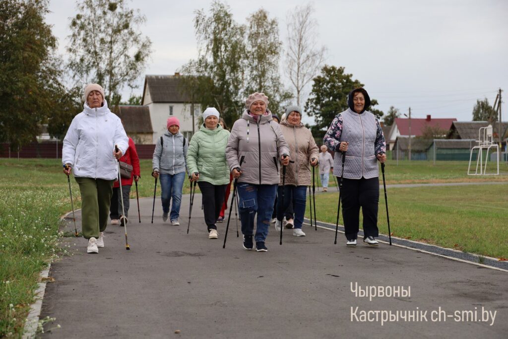 Накануне Дня пожилых людей постоянные посетители Октябрьского ТЦСОН, люди, ведущие активный образ жизни, присоединились к республиканскому марафону по скандинавской ходьбе «Шаг к долголетию».
