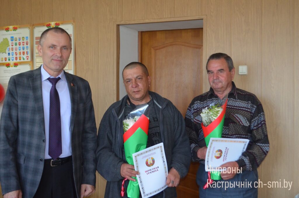 Главным моментом торжественного собрания стало, безусловно, чествование лучших работников филиала ПМК-37. За безупречный добросовестный труд, высокий профессионализм, преданность выбранному делу жизни Почетная грамота Октябрьского райисполкома была вручена водителю Леониду Фесько и монтажнику наружных трубопроводов Вячеславу Шикину, Почетная грамота райсовета депутатов – ведущему инженеру ПТО Елене Гарбар, Почетной грамоты ГО «Белводхоз» удостоен машинист экскаватора Виталий Гавриленко, Почетной грамоты РУП «Калинковичиводстрой» — машинист экскаватора Максим Таранцов и слесарь Александр Мордус, Благодарности этого же ведомства – инспектор отдела кадров Наталья Кадол и заместитель директора по механизации Николай Мартинович, Грамоту и Благодарность от Гомельского обкома профсоюза работников АПК соответственно получили водители Семен Белый и Максим Гринкевич. Также Почетными грамотами филиала «Октябрьская ПМК 37» были отмечены главный бухгалтер Ирина Кудлач, машинист бульдозера Николай Гончаревич, трактористы Максим Мороз и Василий Радиловец, машинист экскаватора Максим Балахонов, водитель Александр Клыга, вальщик леса Александр Галабурда. Не остались без наград и ветераны труда, которые еще продолжают трудиться (таких в организации 9 человек). В соответствии с коллективным договором филиала ПМК-37 к профессиональному празднику материально поощрены все работники мелиоративной организации. А в завершении торжественного собрания всем на угощение был предложен ароматный каравай, исходное сырье для выпечки которого выращено, вполне возможно, на мелиорированных землях, к чему сегодня непосредственное отношение имеют представители этой благородной профессии.