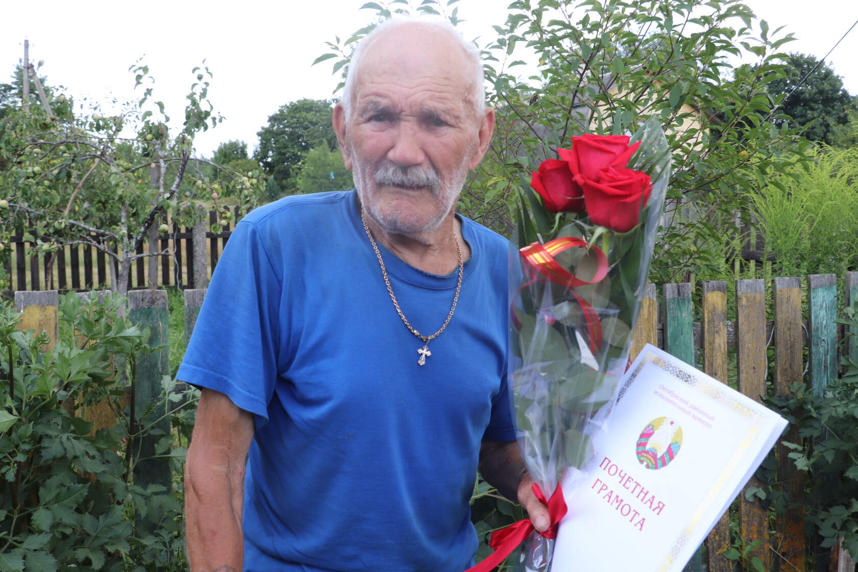 В свой праздничный день юбиляр принимал искренние поздравления не только от родных. По традиции именинника поздравили председатель Краснослободского сельисполкома Ирина Гумар и главный экономит местного хозяйства, председатель профкома Ирина Рябченок.