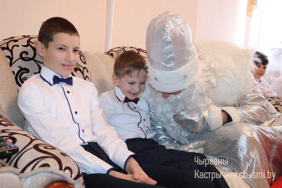 Поздравления с наступающим Новым Годом принимали сегодня воспитанники Дома семейного типа. С подарками к ним пришли заместитель председателя Октябрьского райисполкома Владимир Елисеев, управляющий делами Октябрьского райисполкома, председатель районной организации Белорусского союза женщин Валентина Шлапакова, а также Дед Мороз, Снегурочка и сказочные персонажи. Мягкий ковер, пылесос и сладкие подарки в эти предпраздничные дни пришлись как нельзя кстати дружной семье, где сейчас проживает 7 детей.