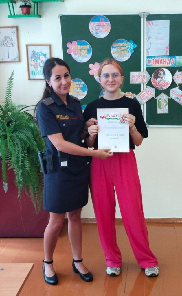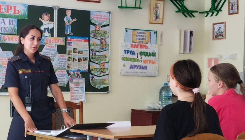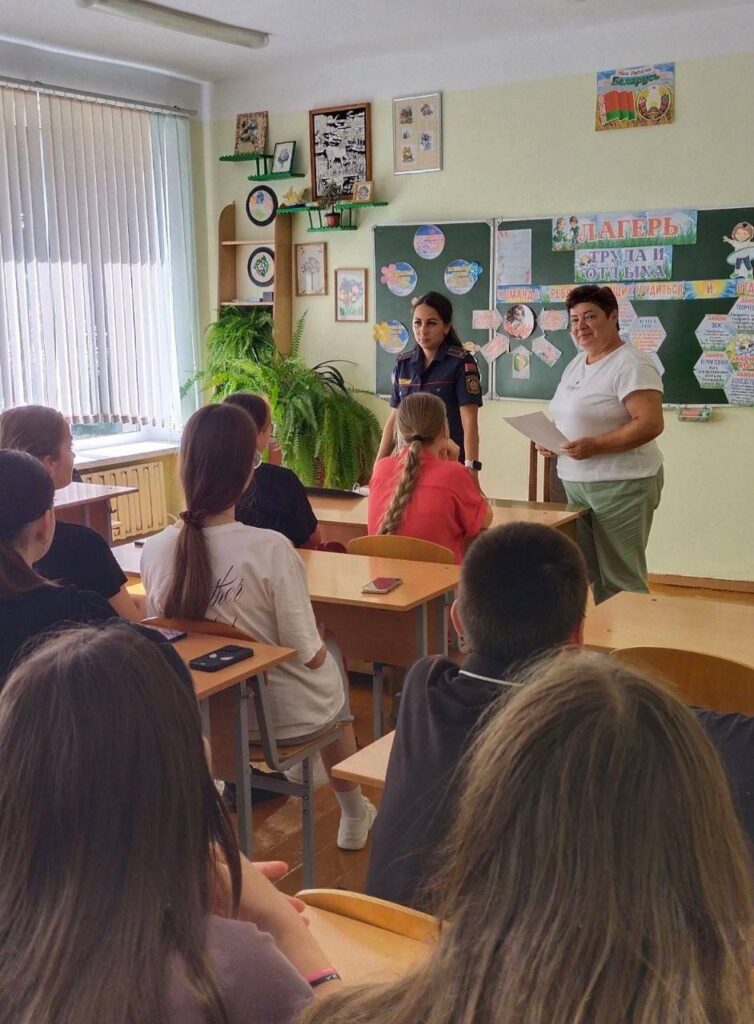 Ребята из воспитательно-оздоровительного лагеря труда и отдыха «К.Р.У.Т.О.» средней школы №2 г. п. Октябрьский начинают новую неделю со встречи с участковым инспектором ИДН Октябрьского РОВД Стеллой Вадимовной Киселевой. Воспитанники обсудили со Стеллой Вадимовной тему «Что я знаю о своих правах?» и приняли участие в тематической викторине.