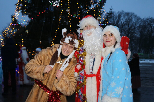 Ведущие праздника объявили о шествии Дедов Морозов. Так, творческие коллективы учреждений и организаций района под дружные аплодисменты, вспышки фотокамер подошли к сцене. Каждая группа сказочных героев была поприветствована зрителями, а после на личном транспорте к месту событий подъехали Дед Мороз и Снегурочка. Нынешние зимы существенно отличаются от прежних, поэтому и сказочному дедушке пришлось сменить сани на автомобиль. Главный новогодний герой поздравил всех присутствующих с праздником и пригласил завести дружный хоровод вокруг елки. И участники, и зрители с удовольствием это сделали. Ну а потом начался театрализованный концерт-представление. Каждая команда представила на суд зрителей свои мини-программы, включающие песни, танцы, интерактивные игры и поздравления.