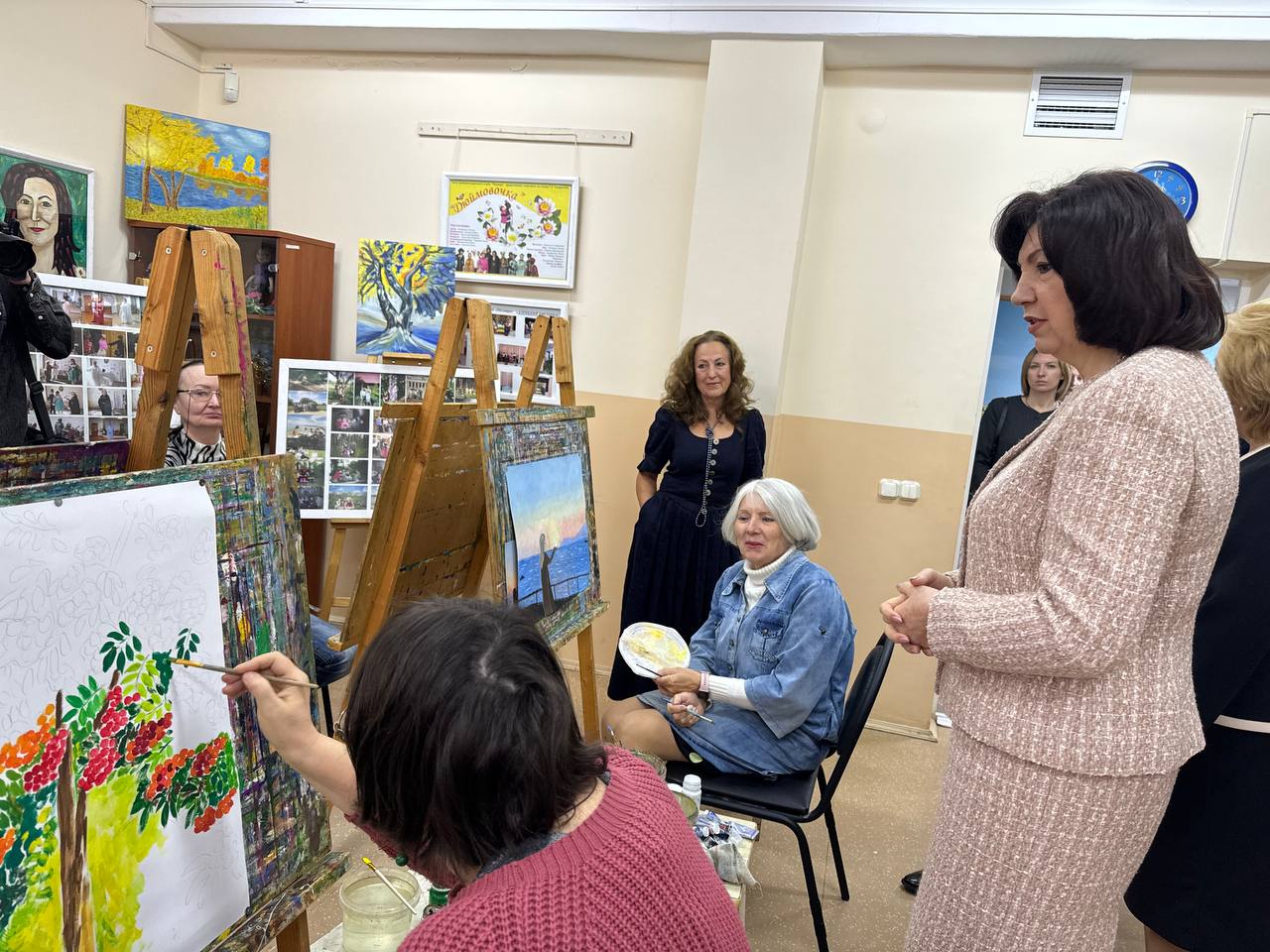 Председатель Совета Республики Наталья Кочанова ознакомилась с работой ГУ «Территориальный центр социального обслуживания населения Московского района г. Минска», посетила изо-студию отделения дневного пребывания, пообщалась с пожилыми гражданами: