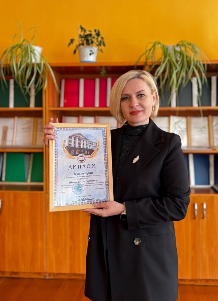 Так, Ольга Сергеевна Шейко в номинации «Лучшая фоторабота педагога» завоевала Диплом III степени. Работа девятиклассницы Анны Наймитенко и одиннадцатиклассника Романа Наймитенко (руководитель – учитель русского языка и литературы Красно- слободской средней школы Ольга Васильевна Наймитенко) в номинации «Творческие находки» также отмечена Дипломом III степени.