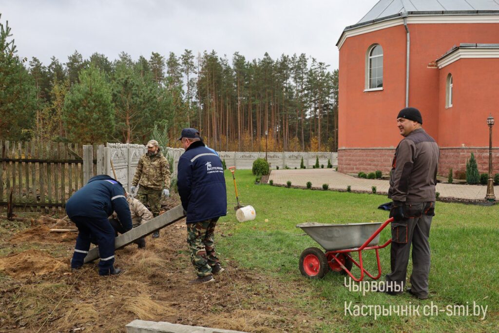 Продолжается благоустройство территории храма Покрова Пресвятой Богородицы Благоустройство 17 Окт 2025 590 Руководители организацией вместе с настоятелем церкви протоиереем Герасимом трудились над установкой бетонного ограждения