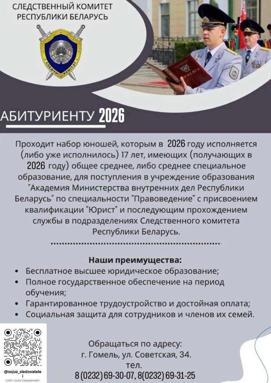 Проходит набор юношей для поступления в учреждения образования «Академия Министерства внутренних дел Республики Беларусь» Образование 02 Окт 2025 670