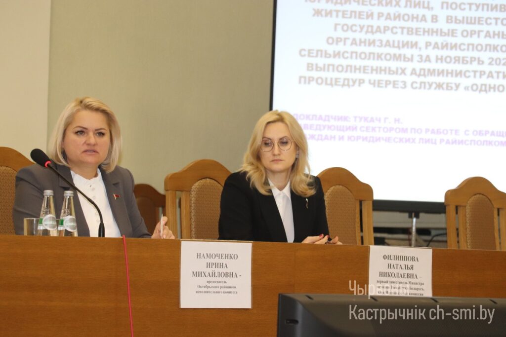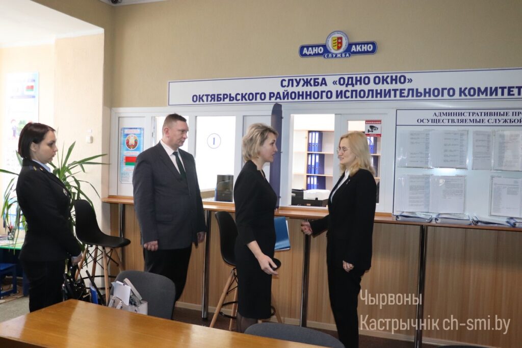 Наталья Николаевна провела прием граждан, приняла участие в аппаратном совещании, на котором рассматривался вопрос об обращениях граждан и юридических лиц и осуществление административных процедур, также ознакомилась с работой службы «Одно окно» и отдела ЗАГС Октябрьского райисполкома.