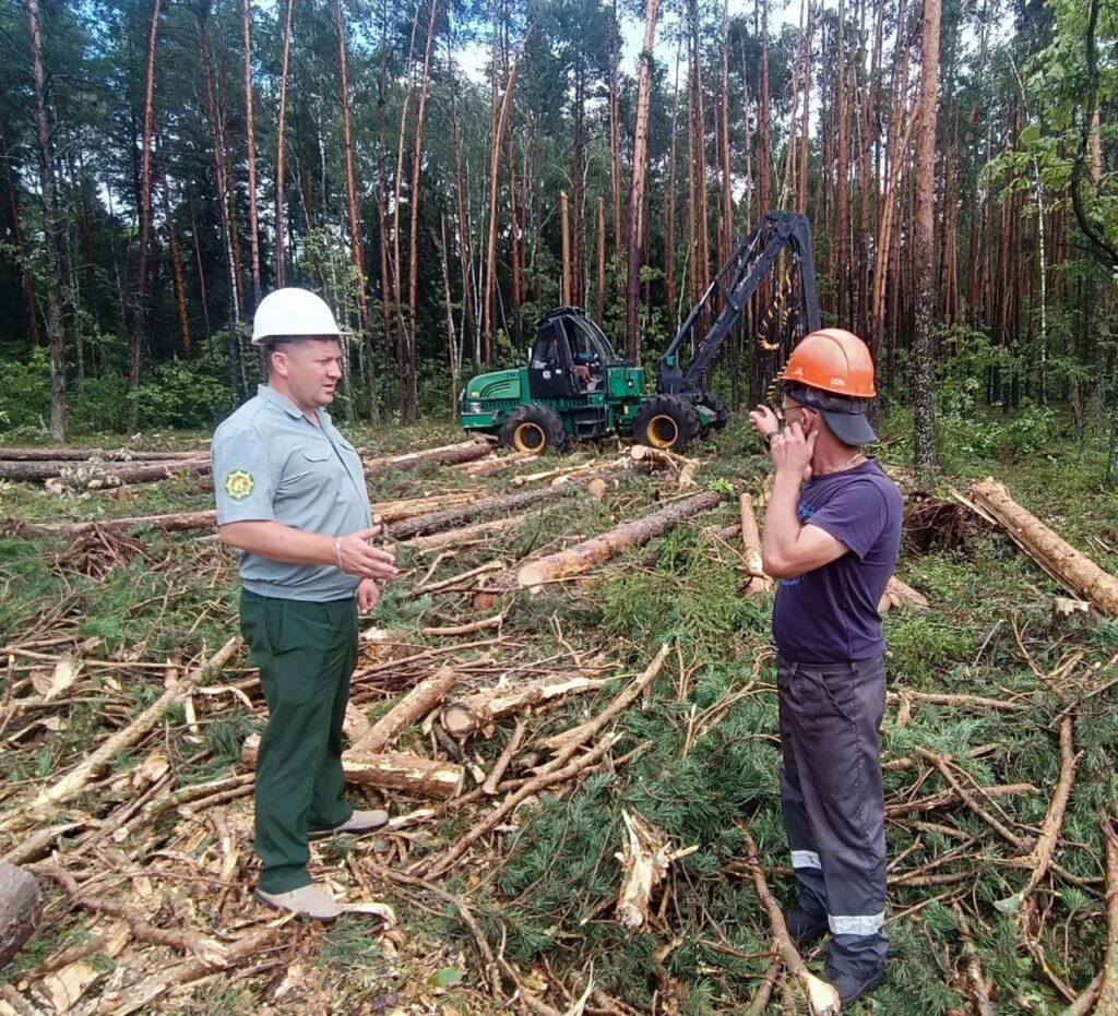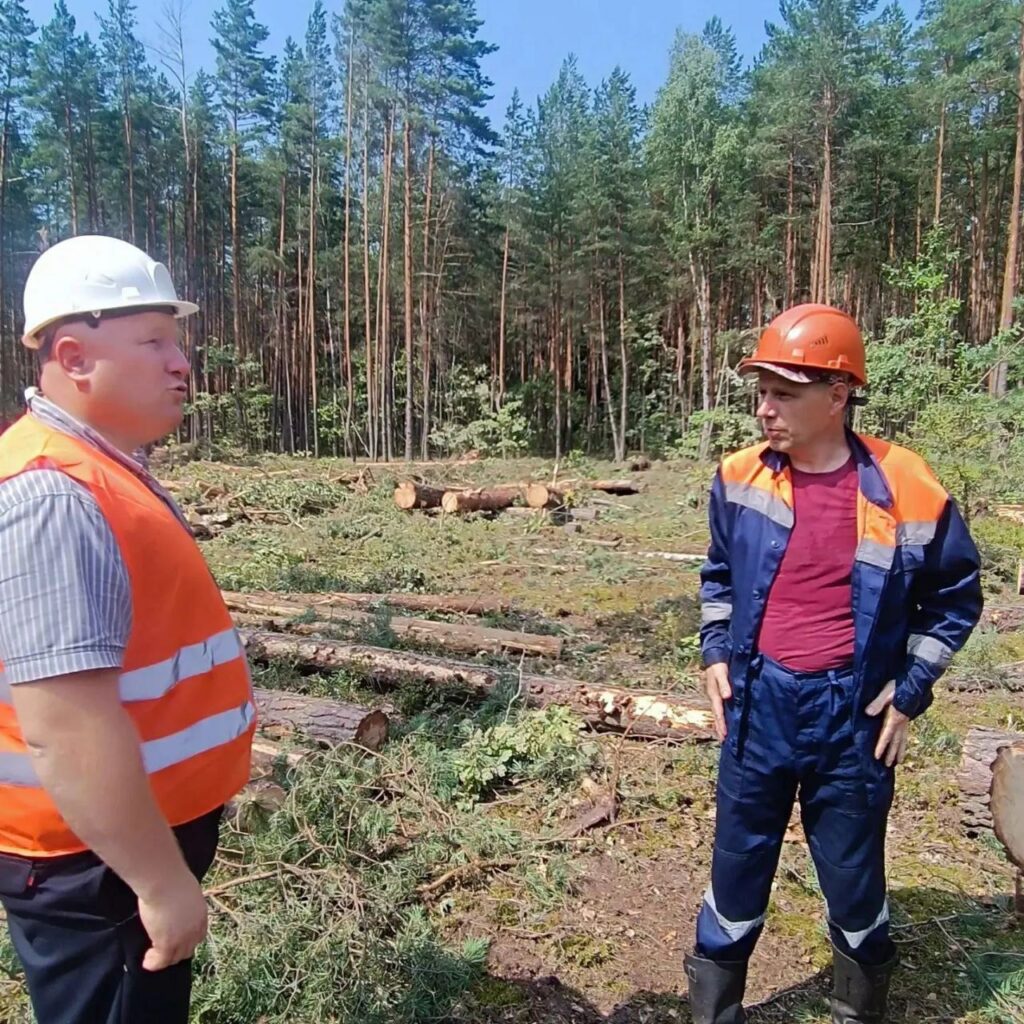 Какие условия труда и быта, как проводятся работы и соблюдаются нормы охраны труда, а также напрямую услышать от своих работников о ходе разработки бурелома выезжают главные специалисты Октябрьского лесхоза: главный лесничий Сергей Абелец, заместитель директора — главный инженер Александр Ропот и заместитель руководителя организации по идеологической работе Сергей Кулак.